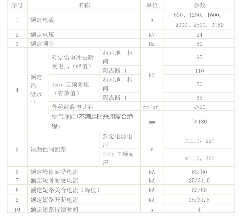 開關(guān)柜額定參數(shù)見表1.